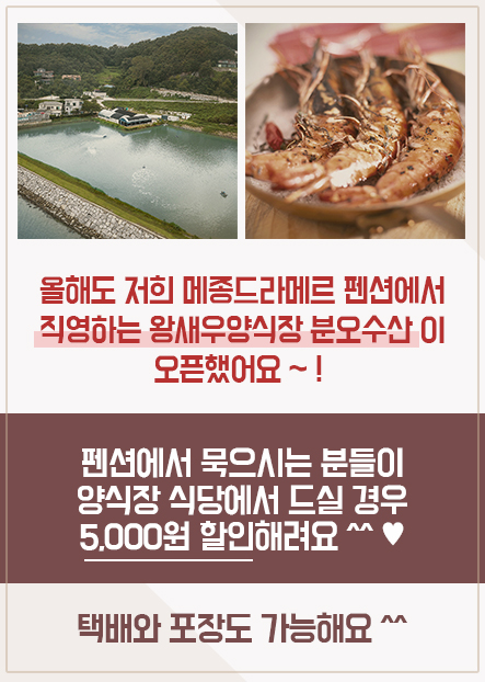 푸른 바다와 싱그러운 산 공기가 어우러진 이 곳은 메종드라메르 펜션 입니다.
